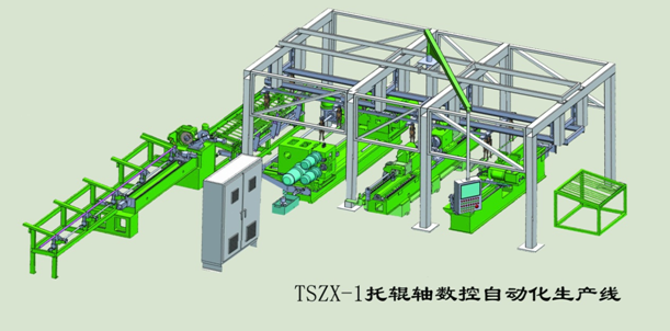 TSZX-1型托輥軸數控自動化生產線采用模塊化設計,控制靈活,自動上料,1人操控,關鍵尺寸誤差±0.05,能滿足國內各型托輥軸的加工需要,班產量≧500支。